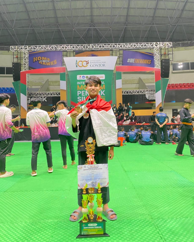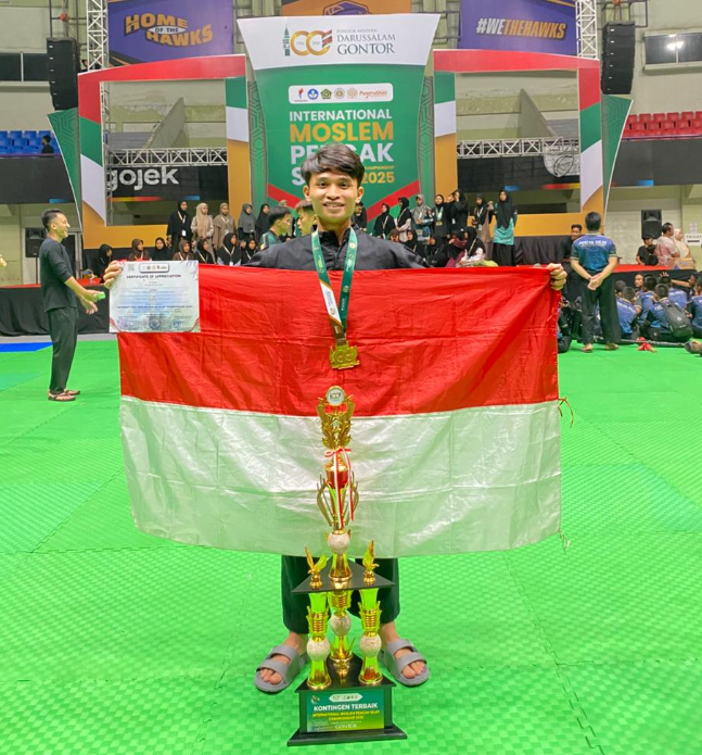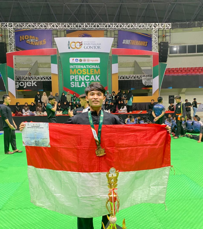 Pekanbaru , 21 September 2025-Sorak sorai kemenangan menggema dari ajang Internasional Moslem Pencak Silat Championship 2025 (Kejuaraan Dunia Gontor) ketika nama Zulham Afandi, mahasiswa Program Studi Hukum Keluarga Islam (HKI) Fakultas Syariah dan Hukum UIN Sultan Syarif Kasim Riau, sebagai juara pertama dan peraih Medali Emas di kelas Under 45 Dewasa Putera.
